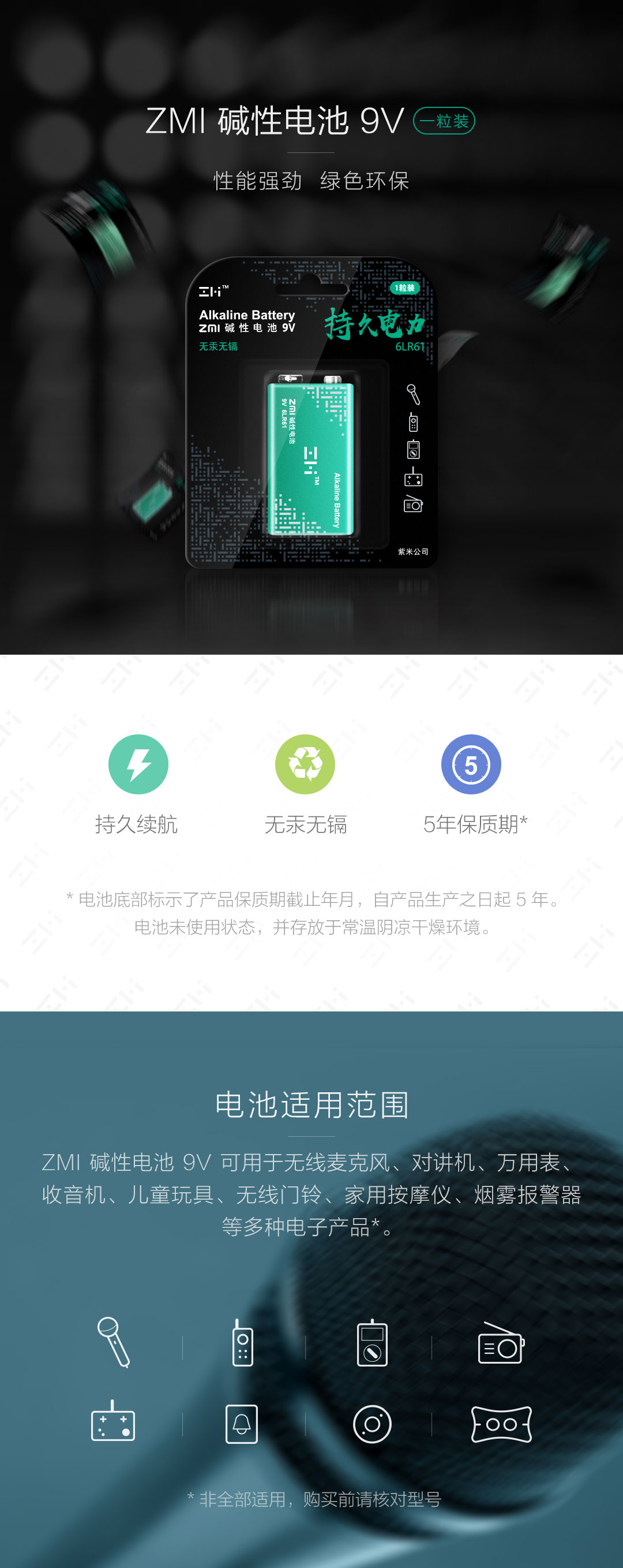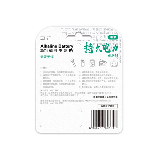 ZMI 碱性电池9V