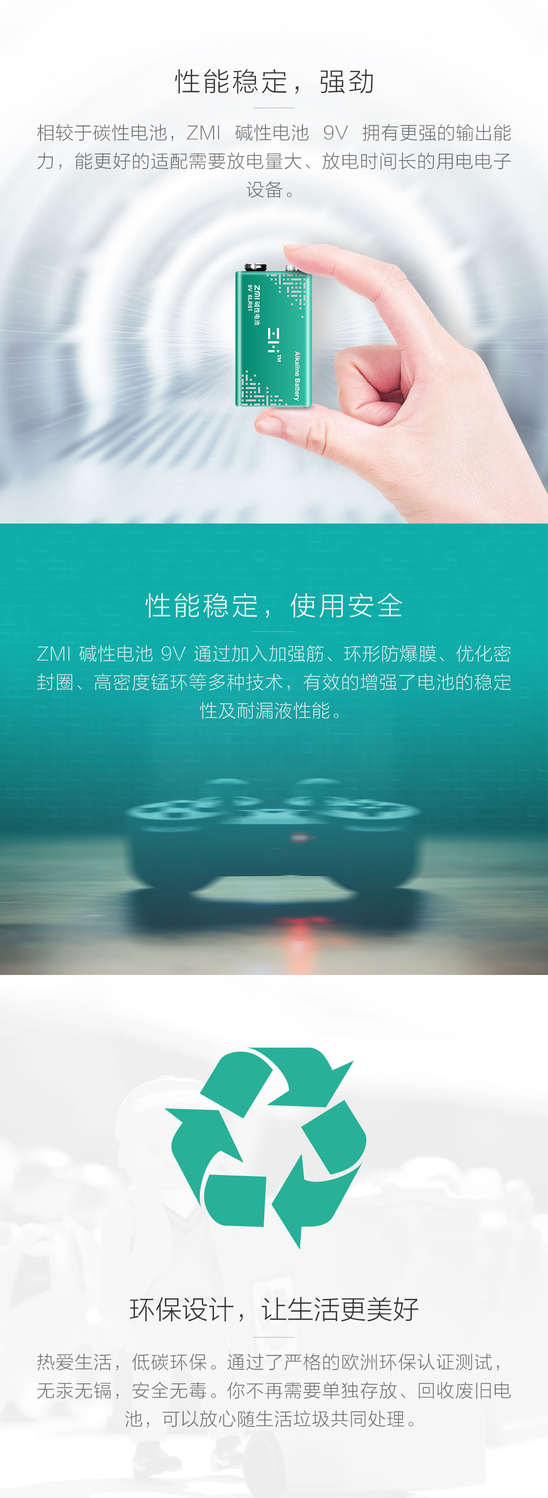 电量持久 / 安全环保 / 无汞无镉